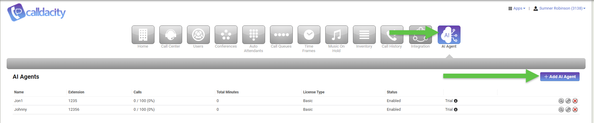 1. Begin by logging into your account portal, selecting "AI Agent" from the menu, and clicking "Add AI Agent".