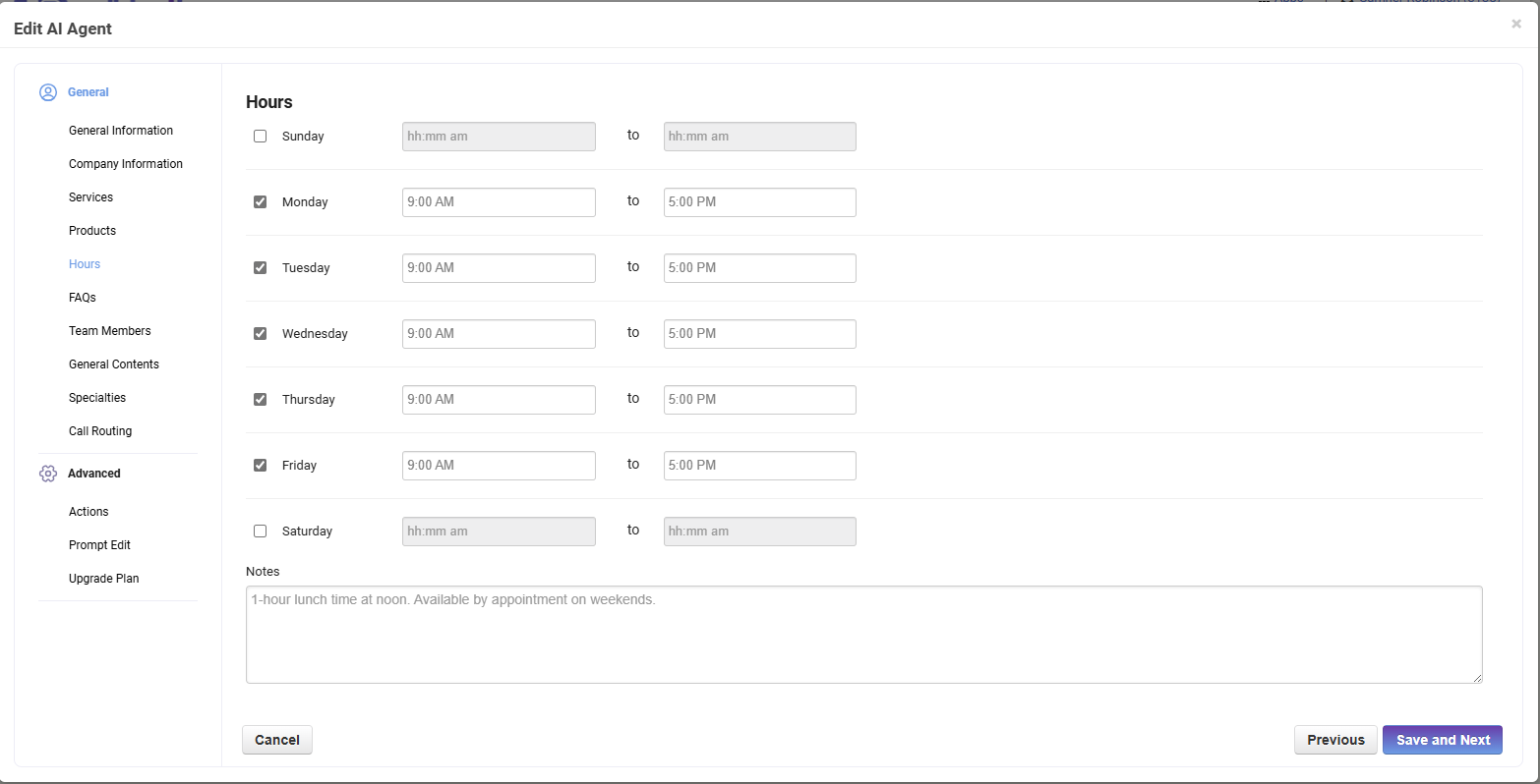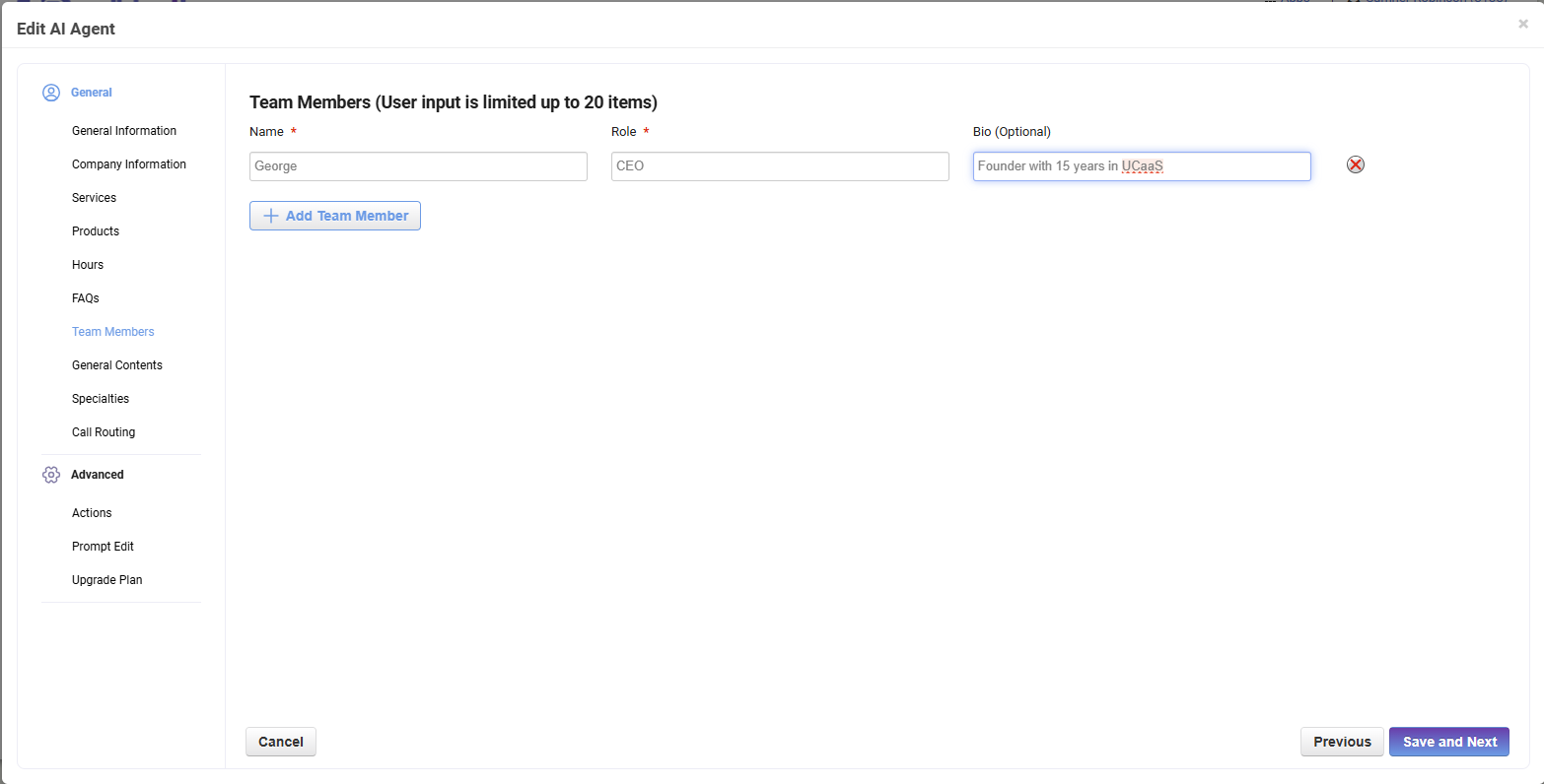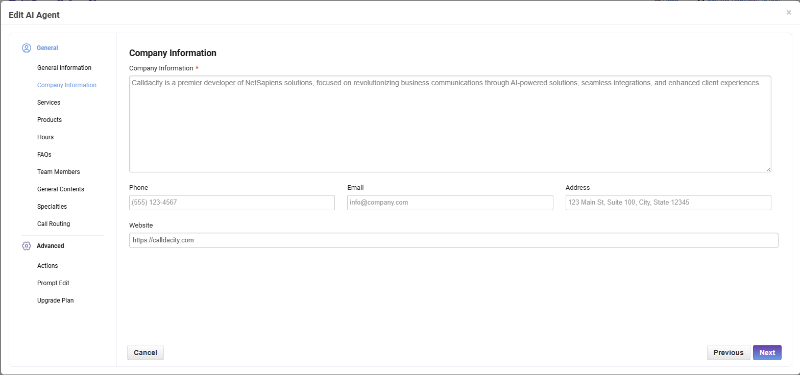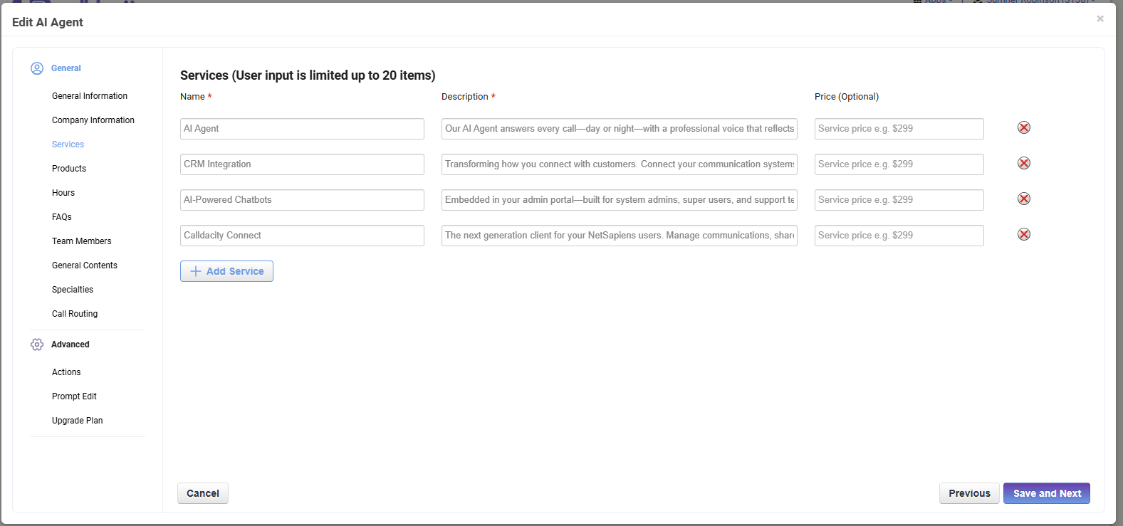- Welcome Message - Craft the greeting callers will hear when your AI Agent answers