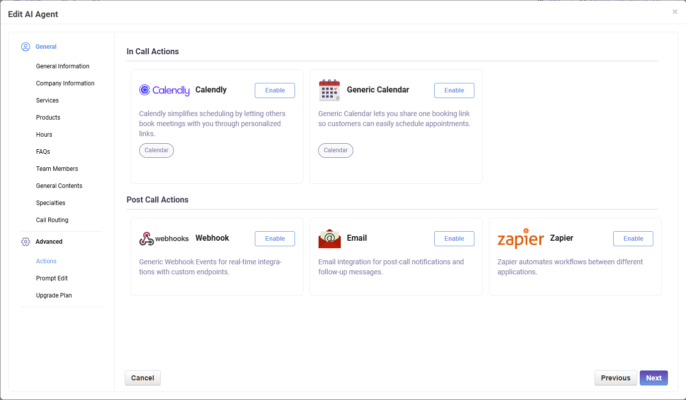 Calldacity AI Agent | Generic Calendar Configuration Give your AI-Agent the ability to easily share a single booking link with Generic Calendar. This integration makes it simple for customers to schedule appointments with you directly, providing a ...
