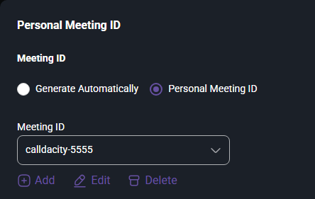 5. Select "Add" or "Edit" to create or edit your Meeting ID