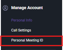 4. Under "Manage Account" select "Personal Meeting ID"