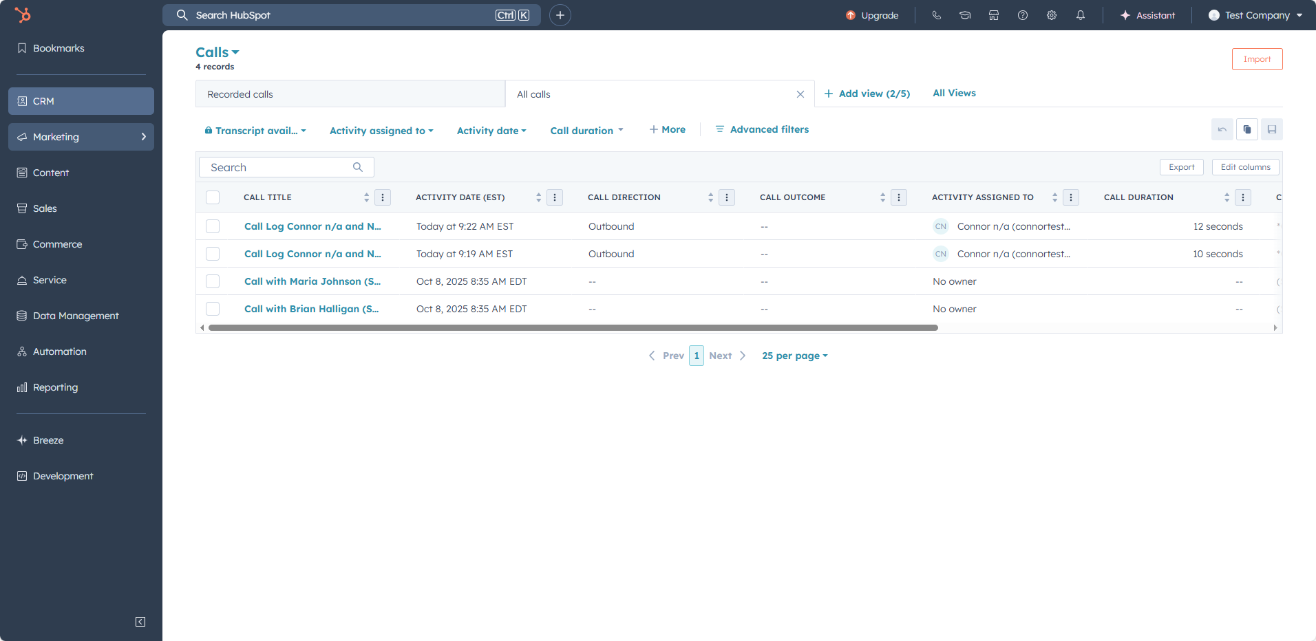 a. Select the specific Data being logged to HubSpot per User (Call, SMS, or Meeting)