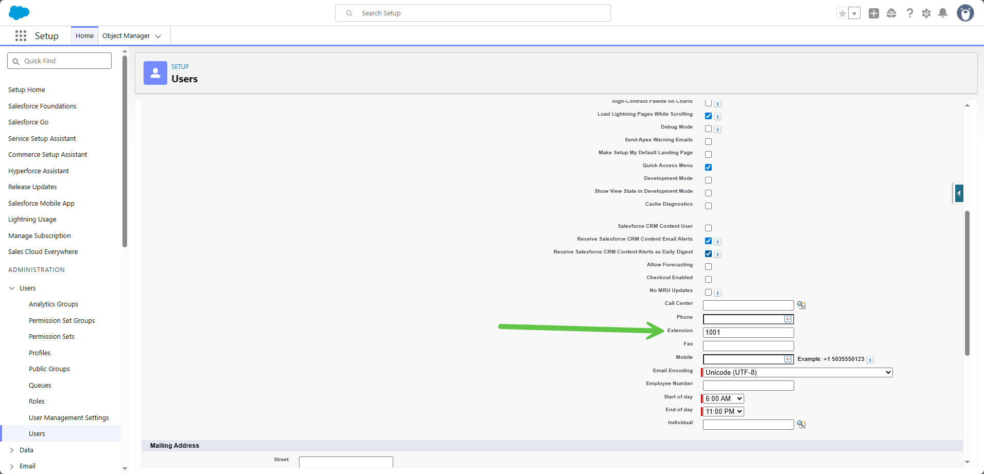 Step 7: Adding Extension Numbers in Salesforce