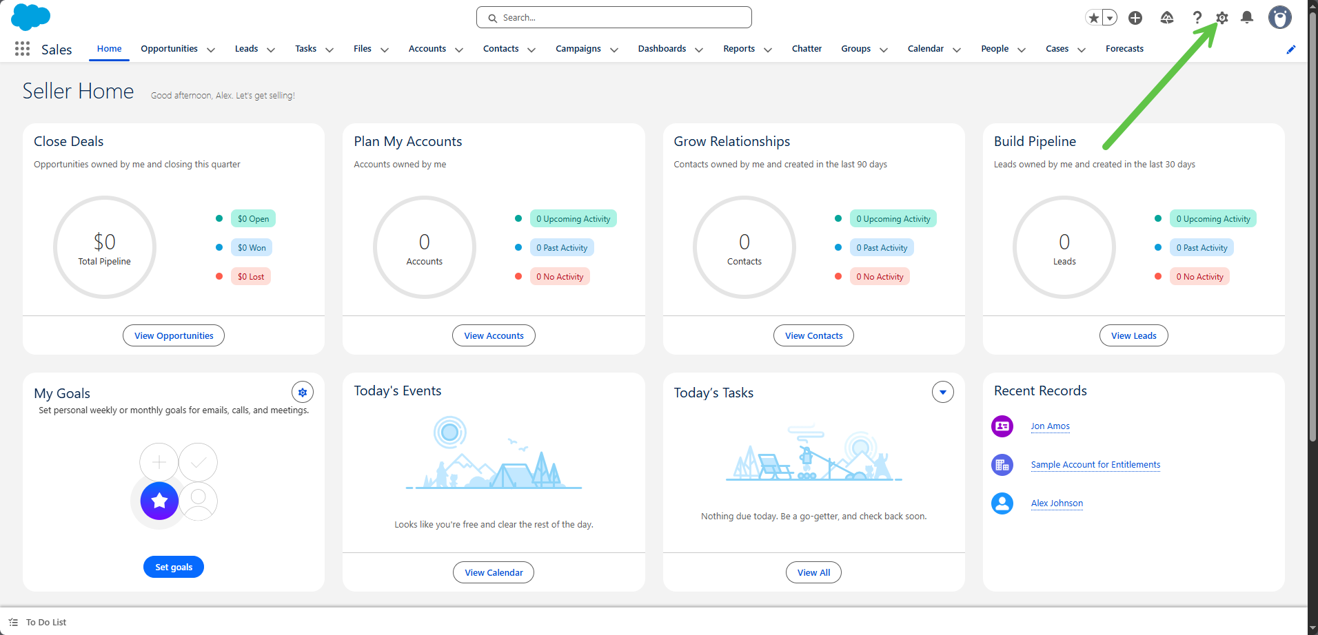 a. Go to Settings via the Gear Icon and then Setup (This will launch a new tab)