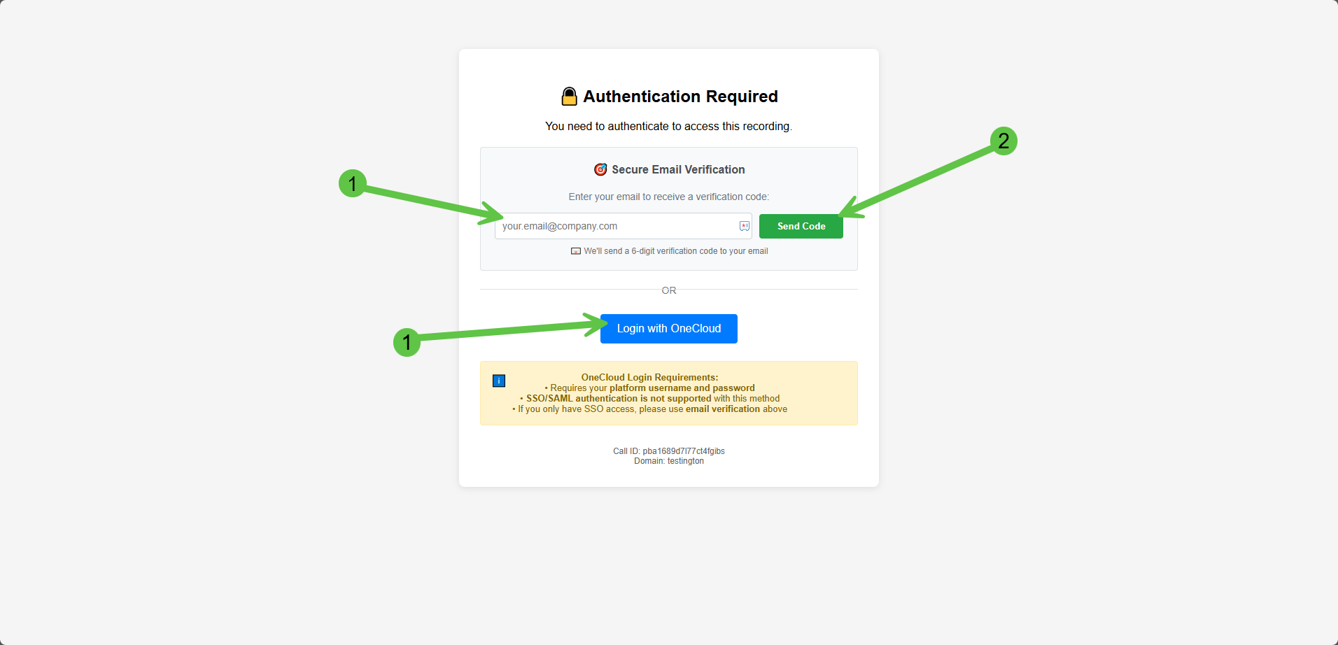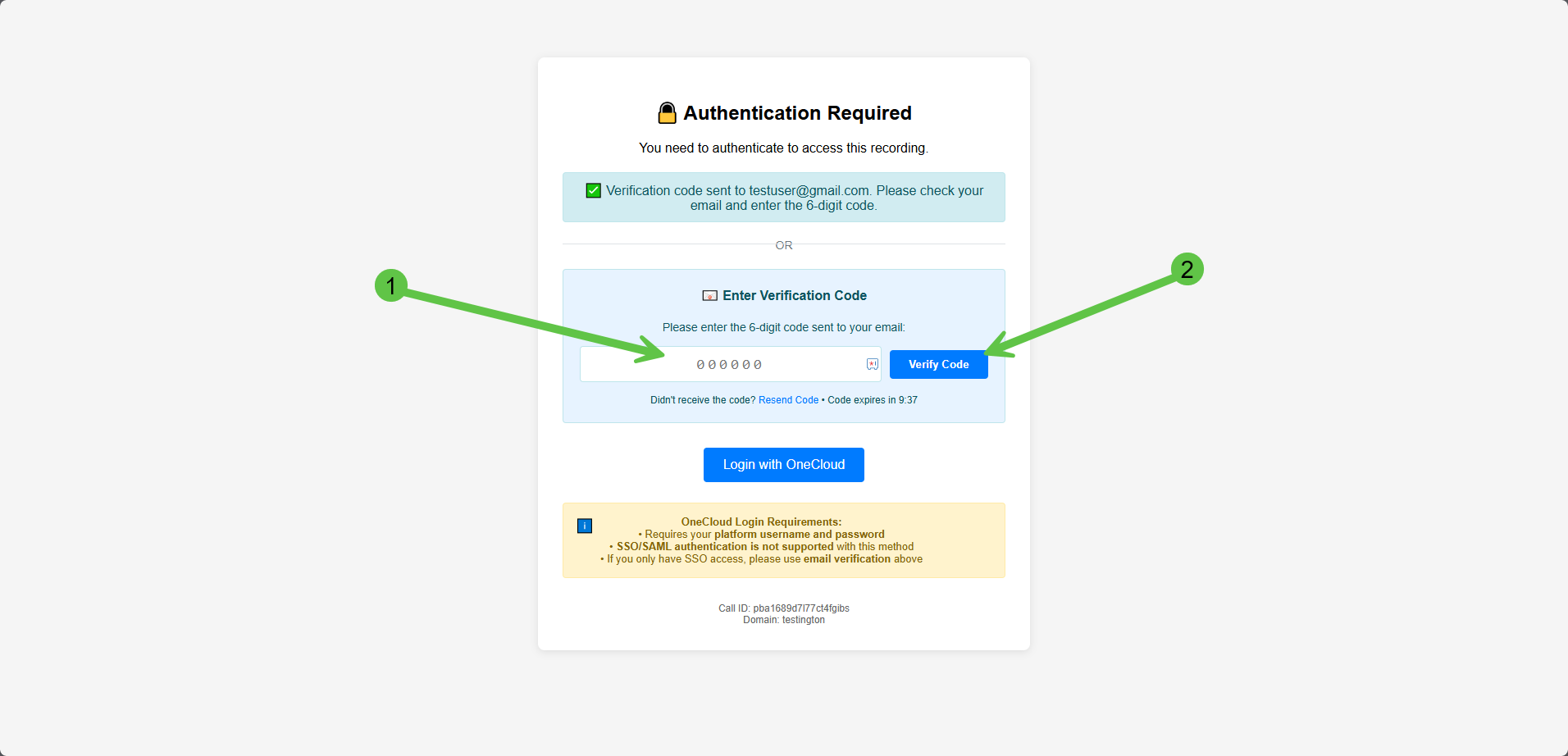 Once authenticated, you will have access to the recording