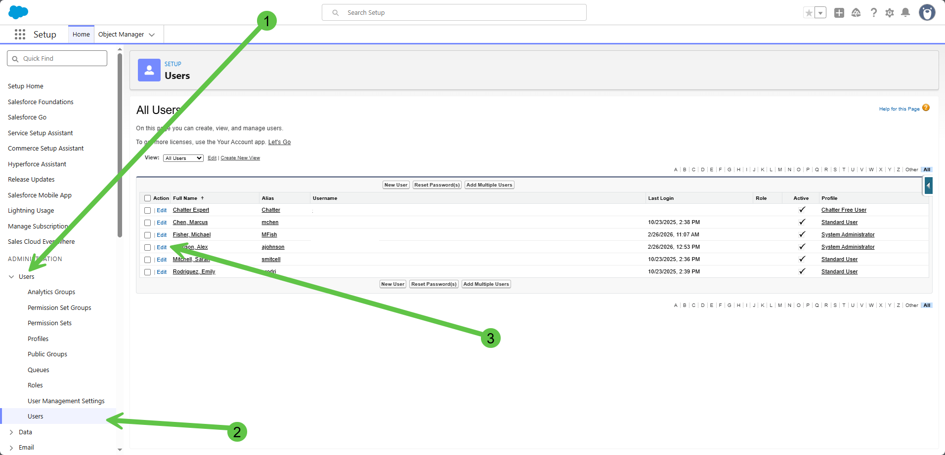 b. Go to Users under the "Administration" column, go to "Users" within the dropdown and select "Edit" on the desired User