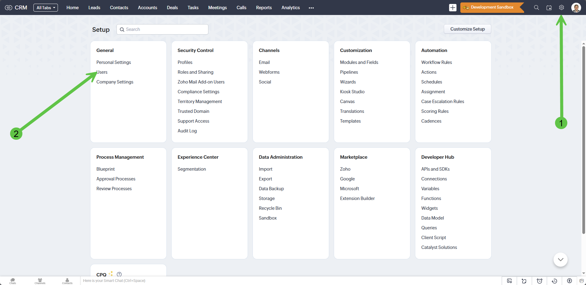 a. Go to Zoho CRM (Please Note: You will be required to have Administrative Permissions to complete the following steps)